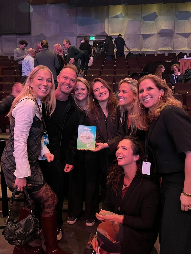 Foto, v.l.n.r.: Roos Lust (Business Development Manager Playground), Roy Boere (Head of Brand Activations, Publicis Groupe NL), Tirsa Creusen (Festivaldirecteur Pinkpop), Marrit Smits (Senior Project Manager Playground), Philine de Wolf (Junior Accountmanager Brand Partnerships Mojo), Dorothée Vanderbroeck (Senior Brand Manager Libresse, Essity), Joan An Beaudoin (Head of Creative Playground)