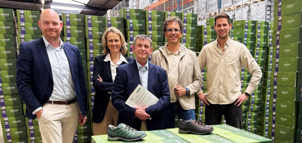 Foto, v.l.n.r.: Mark Prinsen (hoofd Organisatiebureau Stichting DE 4DAAGSE), Astrid Sanders (bestuurslid Stichting DE 4DAAGSE), Henny Sackers (marsleider Stichting DE 4DAAGSE), Dirk Schaffrath (Directeur/Eigenaar TCK Sports Group) en Jonathan Hermans (Marketing Director TCK Sports Group)